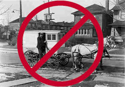 With a refrigerator in the home, visits from the ice delivery van were no longer needed. [Archives of Ontario].