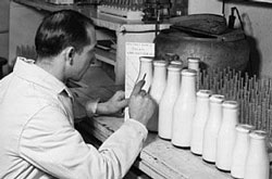 Testing milk for quality – butterfat content – as part of the production process. [Toronto Archives]