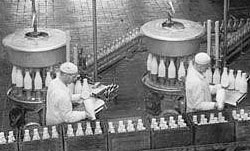 A milk production line where industrial methods were applied to agricultural produce. [Archives of Ontario]