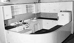 The unitary cabinet refrigerator could be reduced in size so that it eventually took up less space than the ice box. You could fit it into a compact space that included a stove, a sink and cupboards to store food and tableware. It only took a few steps from refrigerator to food preparation counter, and then on to the stove.